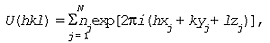 где xj, yj и zj – координаты атомов, fj – атомный фактор рассеяния, показывает, во сколько раз атом j рассеивает рентгеновское излучение сильнее, чем электрон.