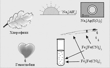 Одним из основателей химии комплексных соединений считается швейцарский химик А.Вернер, предложивший координационную теорию строения комплексных соединений. Первые вещества, отнесенные к комплексным, использовались берлинским цехом художников как краски – турнбулева синь и берлинская лазурь. Сегодня эти вещества используют в аналитической химии как реагенты на ионы Fe2+ и Fe3+. Гемоглобин и хлорофилл, без которых невозможно представить жизнь на Земле, – это тоже комплексные соединения. Многие природные минералы также имеют комплексную природу, например криолит. На процессах комплексообразования основано отделение золота от пустой породы. Фотографический процесс также немыслим без комплексных соединений (пиктограмма 2).