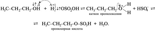 Если в смеси содержатся пропиловый спирт и серная кислота, прежде всего идет реакция между ними с образованием пропилсерной кислоты: