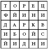 В квадрат вписаны названия тринадцати химических элементов. Прочтите их.